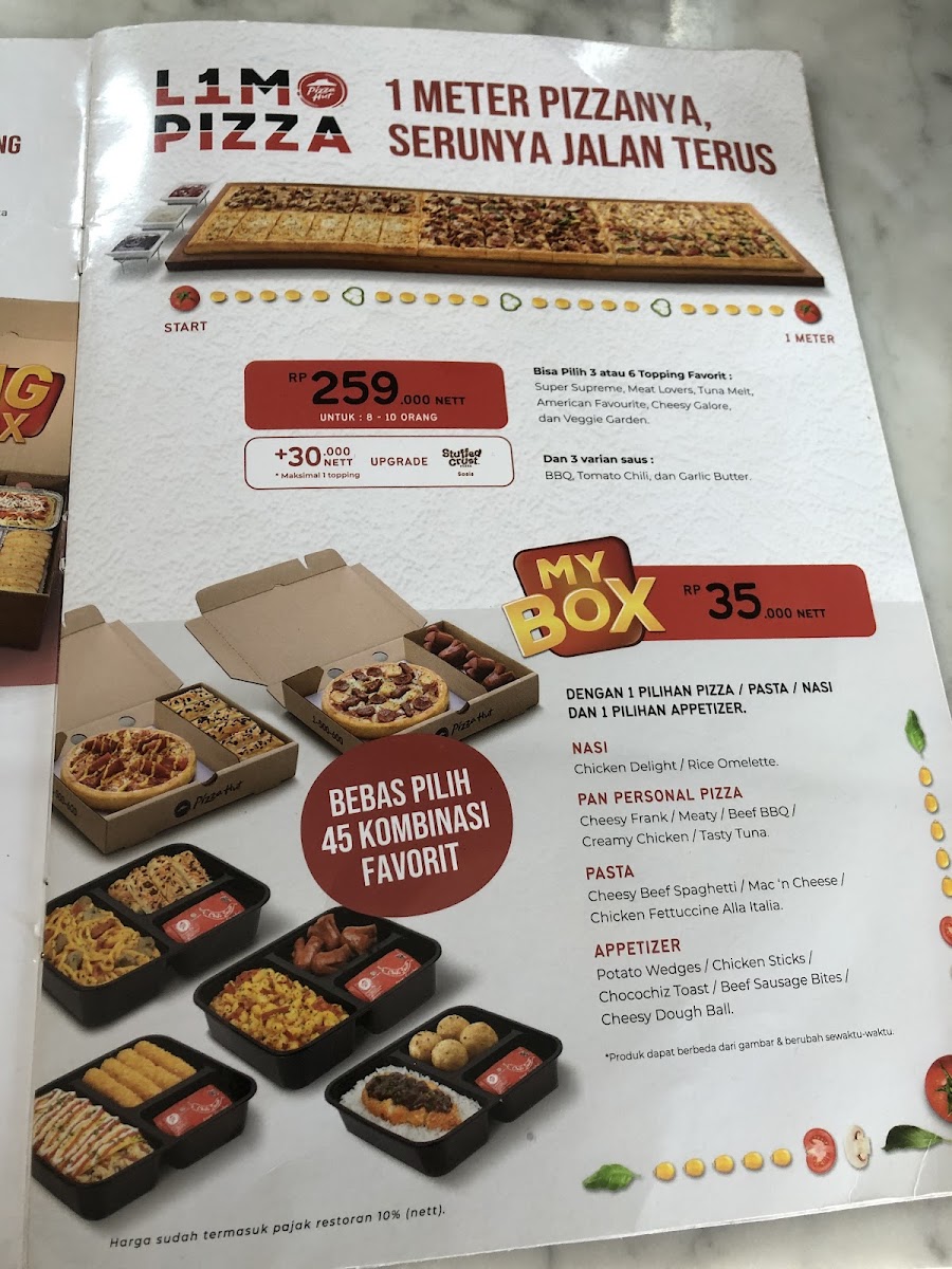 Pizza Hut Restoran in Jambi offers a delightful dining experience with a menu that caters to both classic and modern pizza lovers. Known for its comfortable and clean ambiance, the restaurant serves a variety of pizzas that balance familiar flavors with a satisfying texture. Highlighted by positive customer feedback, the menu features affordable combo packages, such as budget-friendly meals including a small pizza, pasta, and nuggets, delivering great value without compromising taste.